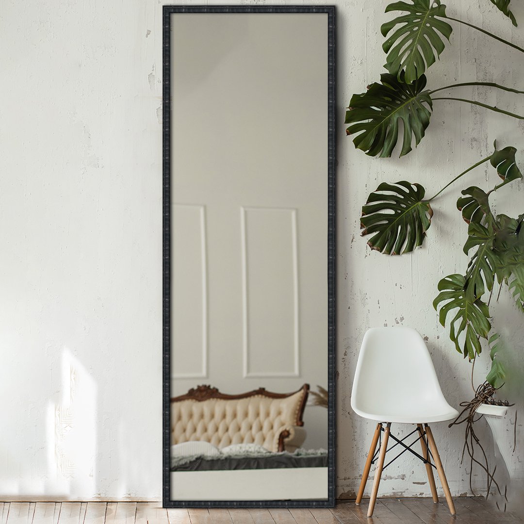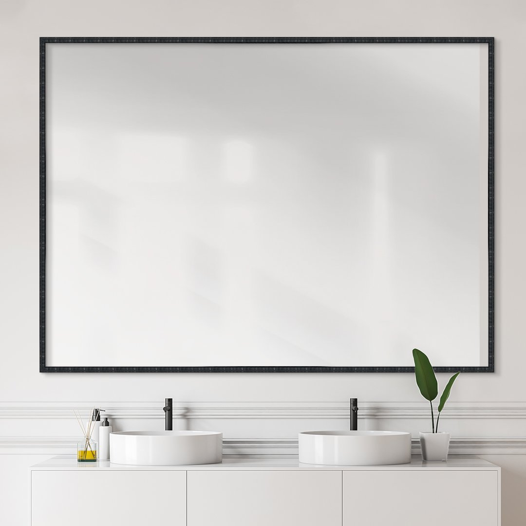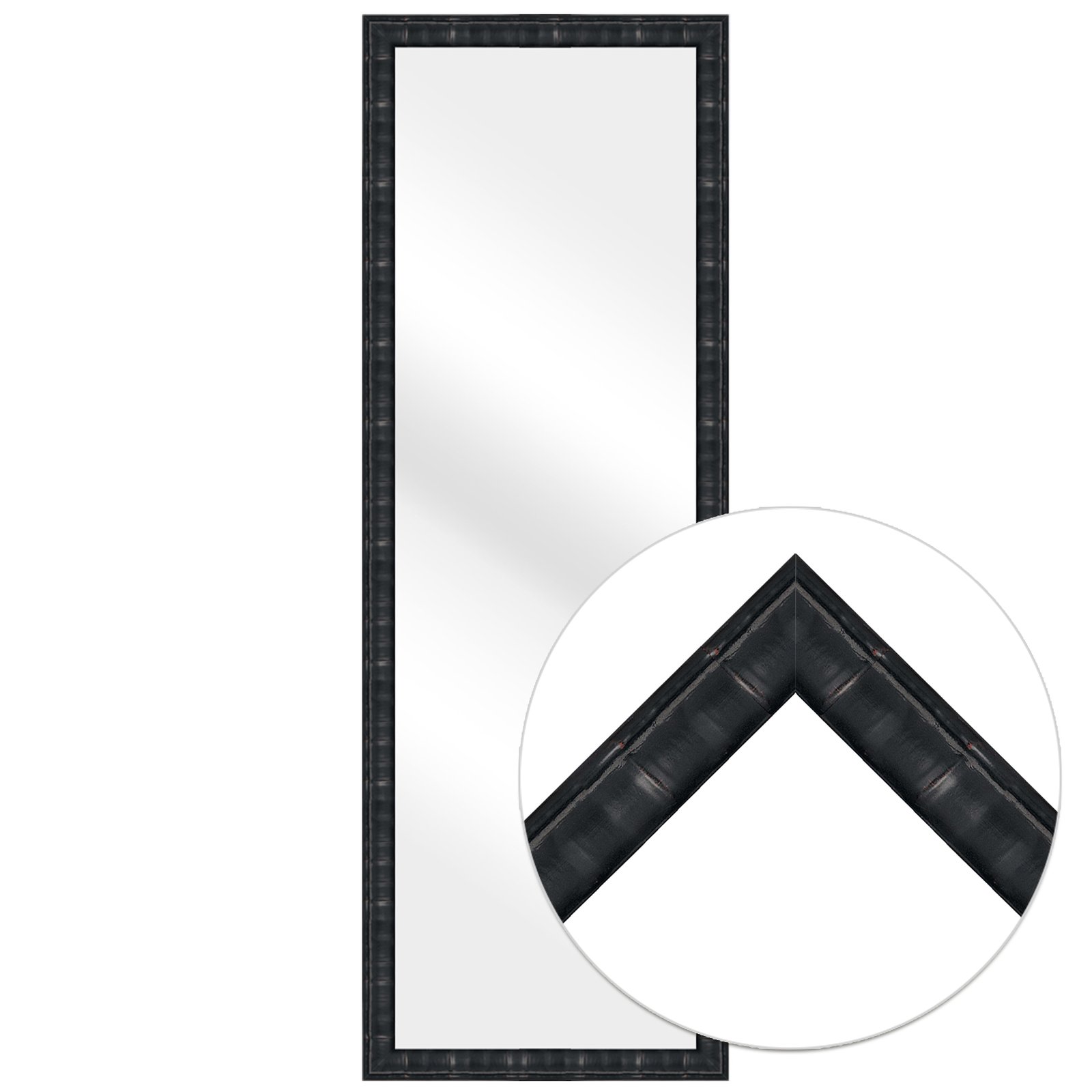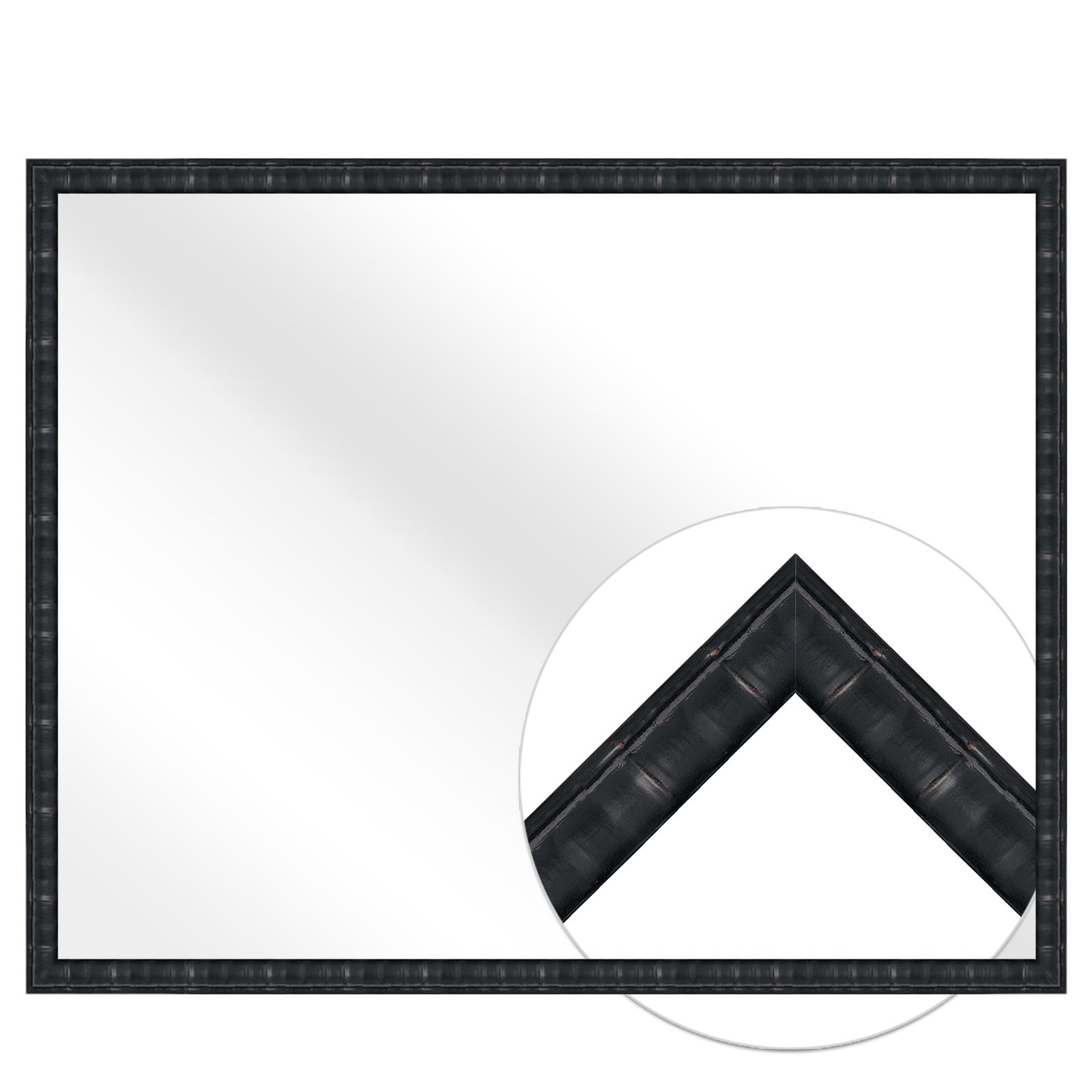 This mirror features a sleek, black finish with subtle bamboo-inspired ridges, offering a modern twist on a natural design. Its deep, rich tone adds a bold statement to any room, while the textured surface brings depth and interest to your décor.
